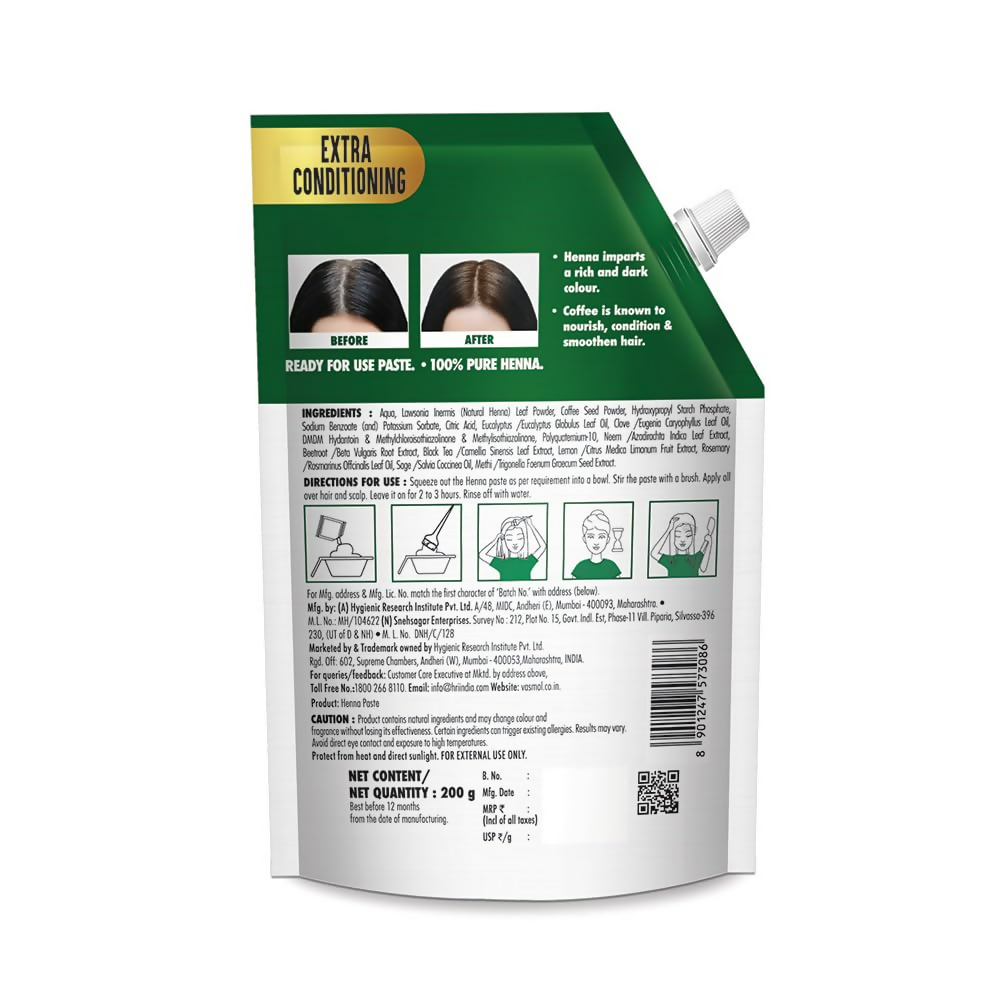About the Product:- Vasmol Natural Henna Paste is conveniently pre-mixed with 100% pure Henna and natural elements such as beetroot, coffee, sage oil, and more. This natural henna paste is completely free of ammonia, PPD, bleach, and artificial colors. Vasmol's natural henna paste provides a rich brown hue to cover greys while conditioning your hair for a smooth and glossy finish.