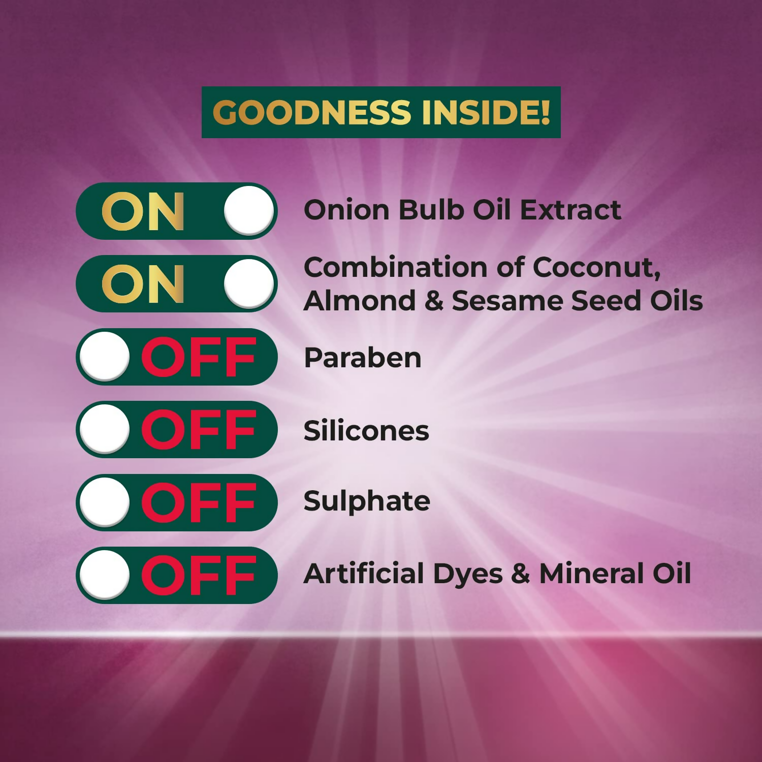 - Fortifies hair roots - Vasmol onion hair oil fortifies the hair from the roots, enhancing their strength by 2 times. It contains onion bulb oil extract, which is rich in sulfur compounds known to encourage collagen production, fortify the roots, and stimulate hair growth while maintaining scalp health.