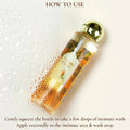 - Gently squeeze the bottle to dispense a few drops of the intimate cleanser. Apply externally to the intimate area and rinse thoroughly.