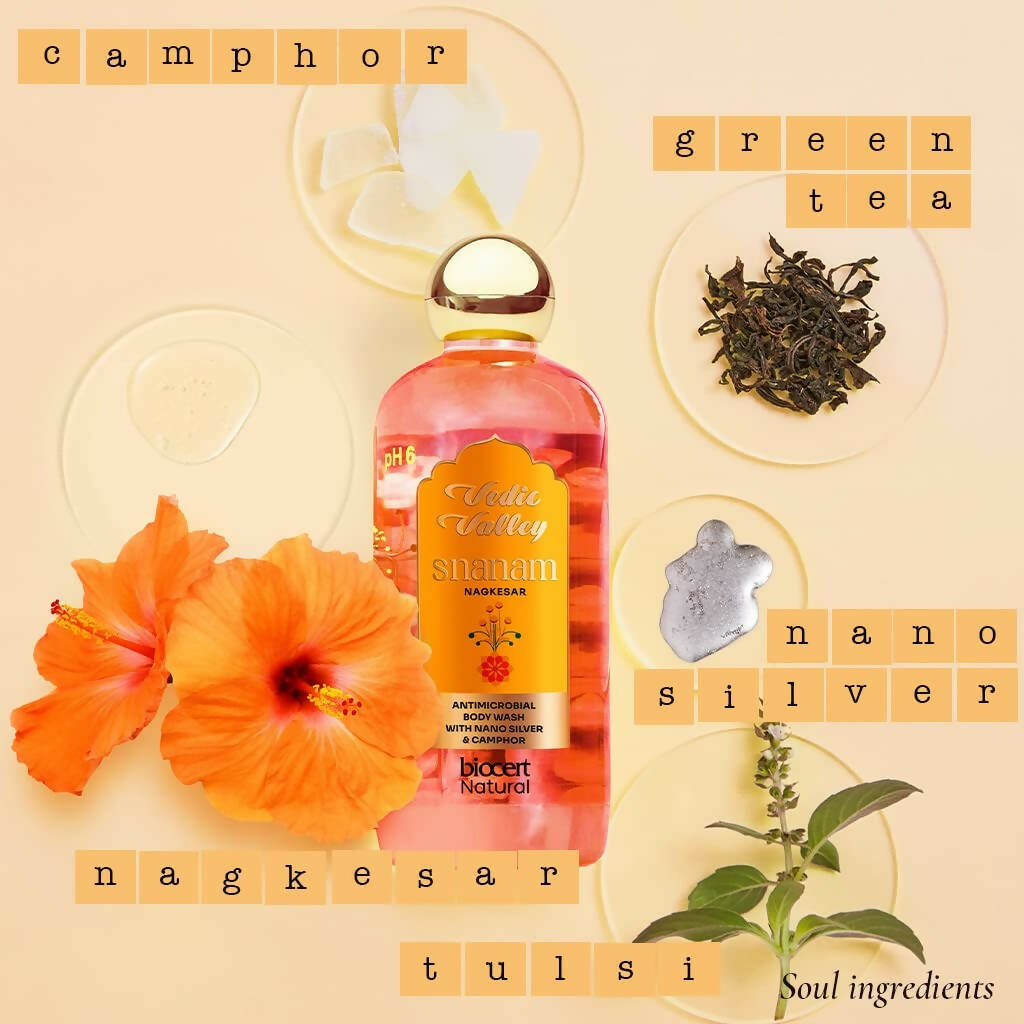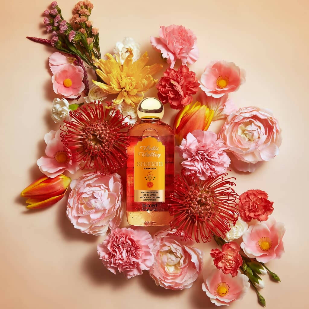 - The Nagkesar Body Wash offers an earthy aroma with a hint of honey, providing a gentle sensation throughout the day. Rooted in Ayurveda, Nagkesar has been valued for centuries for its diverse therapeutic benefits. The herbal extract from this lovely chestnut blossom is reputed for its ability to effectively calm the skin, deeply cleanse pores, and promote a uniform skin tone.