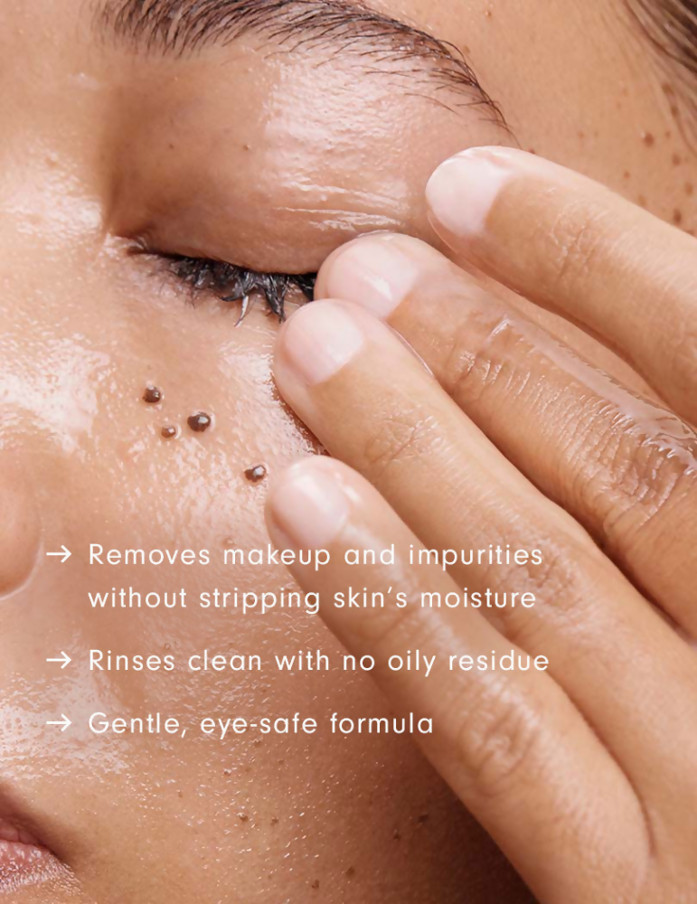 - Apply a dime-sized amount to dry skin, wet your fingertips, continue massaging, then rinse and softly pat dry.