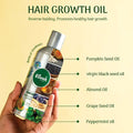 - Pumpkin Seed Oil, Virgin black seed oil, Castor Oil, Almond Oil, Vitamin E, Rosemary Oil, Peppermint oil
