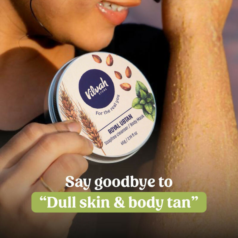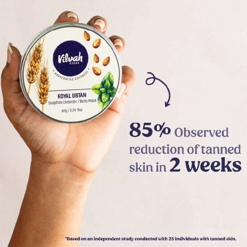 - Crafted with a rare blend of sun-dried opulent ingredients, the VILVAH Royal Ubtan functions not only as a soap-free cleanser but also as an exfoliator that invigorates the skin's underlying layers and effectively eliminates tan. It fulfills the versatile role of being a cleanser, scrub, face mask, and body mask simultaneously.