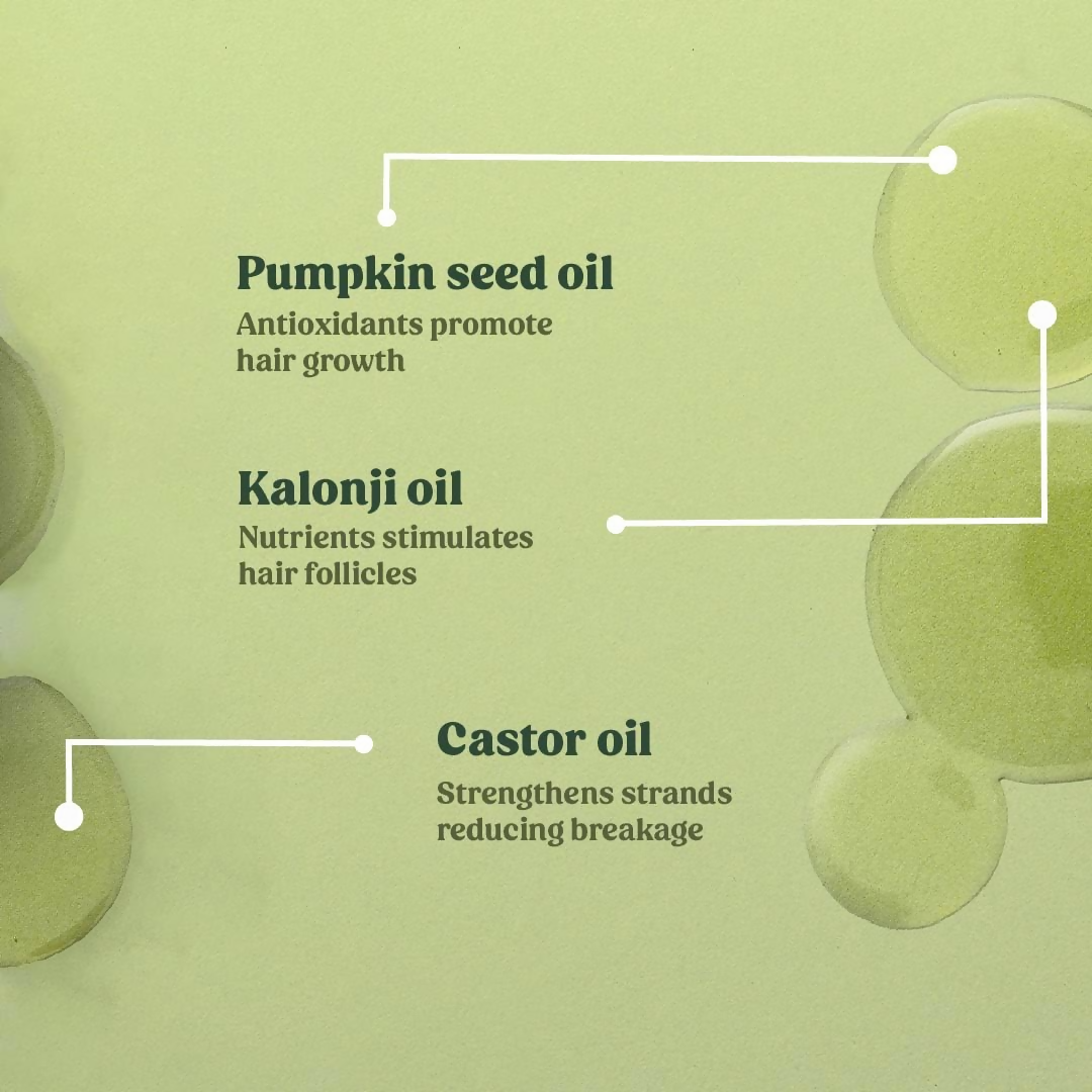 - Infused with pumpkin seed oil, rich in magnesium and zinc, it is clinically shown to enhance hair density and thickness after consistent use over 20 weeks.