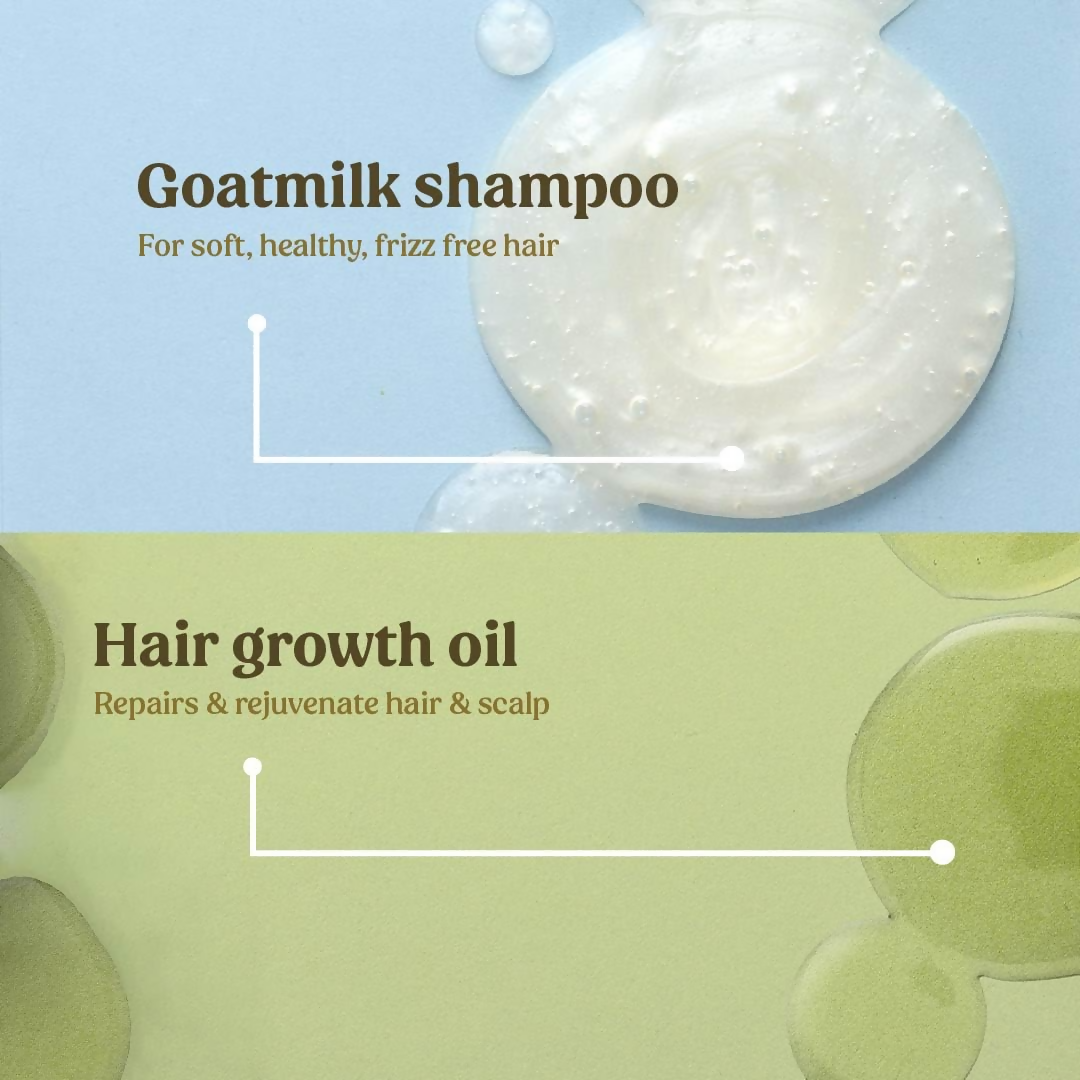 - Worried about the appearance of thinning areas on your scalp? Our hair-strengthening combo delivers remarkable benefits for both hair and scalp, featuring Hair Growth Oil and Goat Milk Shampoo. Goat milk is renowned for its calming effects and ability to alleviate conditions like eczema and psoriasis of the scalp. Clinically validated Pea Protein offers superior moisture retention compared to other moisturizing shampoos.