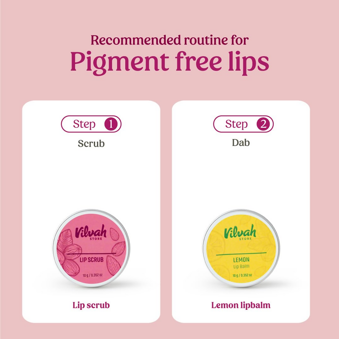 - The lemon essential oil in our Lip Scrub serves as a natural bleaching agent, brightening your lip color and aiding in evening out pigmented lips.