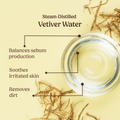 - Vetiver water acts as a natural astringent and maintains the skin's pH balance.