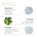 - 3) CONFRONTS ACNE: Featuring Salicylic Acid, a powerful BHA, this wash aids in exfoliating the skin's outer layer to remove dead cells, reduce imperfections, and combat acne