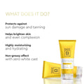 - 4) MOISTURIZING AND HYDRATING: Enriched with hydrating elements like aloe vera and carrots, this sunscreen helps to moisturize the skin and maintain a naturally luminous complexion.