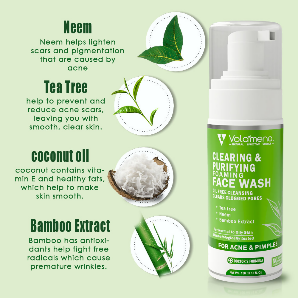 About the Product:- Volamena's Clearing and Purifying Foaming Face Wash is a naturally gentle, coconut-derived facial cleanser that thoroughly purifies the skin while assisting in preserving its pH equilibrium.
