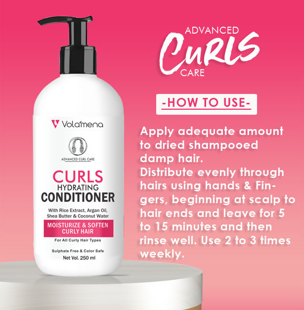 About the Product:- Experience the Volamena Curly Hair Hydrating Conditioner, enriched with Rice Extract, Argan Oil, Coconut Water, and Shea Butter, designed to help you achieve impeccably defined and styled curls in any weather. It deeply nourishes your hair, restores its luster, provides a well-defined structure, minimizes frizz, and keeps your hair softer and styled throughout the day. Thanks to the nourishing properties of Argan Oil, this conditioner hydrates and nurtures your curls like an expert. Suitable for all curly hair types and textures for both men and women, it is ideal for daily use. Free from harmful chemicals such as Parabens, SLES, PEG, and artificial colors.