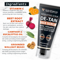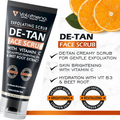 About the Product:- Volamena De-Tan Face Scrub gently exfoliates dead skin, moisturizes the upper layer of your skin and regenerates cells for a fresh look and youthful radiance. Finely ground walnut shell and glycolic acid gently remove dead cells to instantly reveal the inner glow of your skin, reviving it from the daily wear and tear due to heat, dust and pollution. Vitamin C brightens skin and ensures a healthier complexion while protecting skin from tanning, making it smooth and refreshed. Beetroot and aloe vera extract are rich in antioxidants, that protect the skin cells from free radical damage and lighten the skin tone to improve the skin complexion. Camphor and eucalyptus oil cleanses skin while providing instant brightening, cooling and lightening benefits. This product combines the benefits of shea butter, jojoba oil which deeply moisturize the skin, and vitamin B3 improves skin hydration level of the skin. After every scrub session, your skin feels tighter, brighter, smoother and younger.