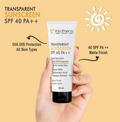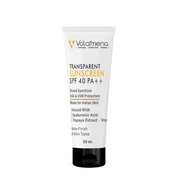 About the Product:- Volamena's transparent sunscreen with SPF 50 ++ is enriched with a unique formulation of hyaluronic acid, Papaya extract, and Vitamin E, offering a trio of benefits: hydration, skin calming, and protection from sun damage against harmful UVA and UVB rays. Crafted with Hyaluronic acid, a vital moisturizer naturally present in the skin, it delivers an effortlessly absorbing, transparent, and invisible layer suitable for use under makeup, thanks to its velvety matte finish. This Dermatologically tested sunscreen is ultra-light, providing a matte finish with a non-greasy, non-sticky, and invisible transparent texture that is ideal for all skin types, including dry, oily, and sensitive skin.