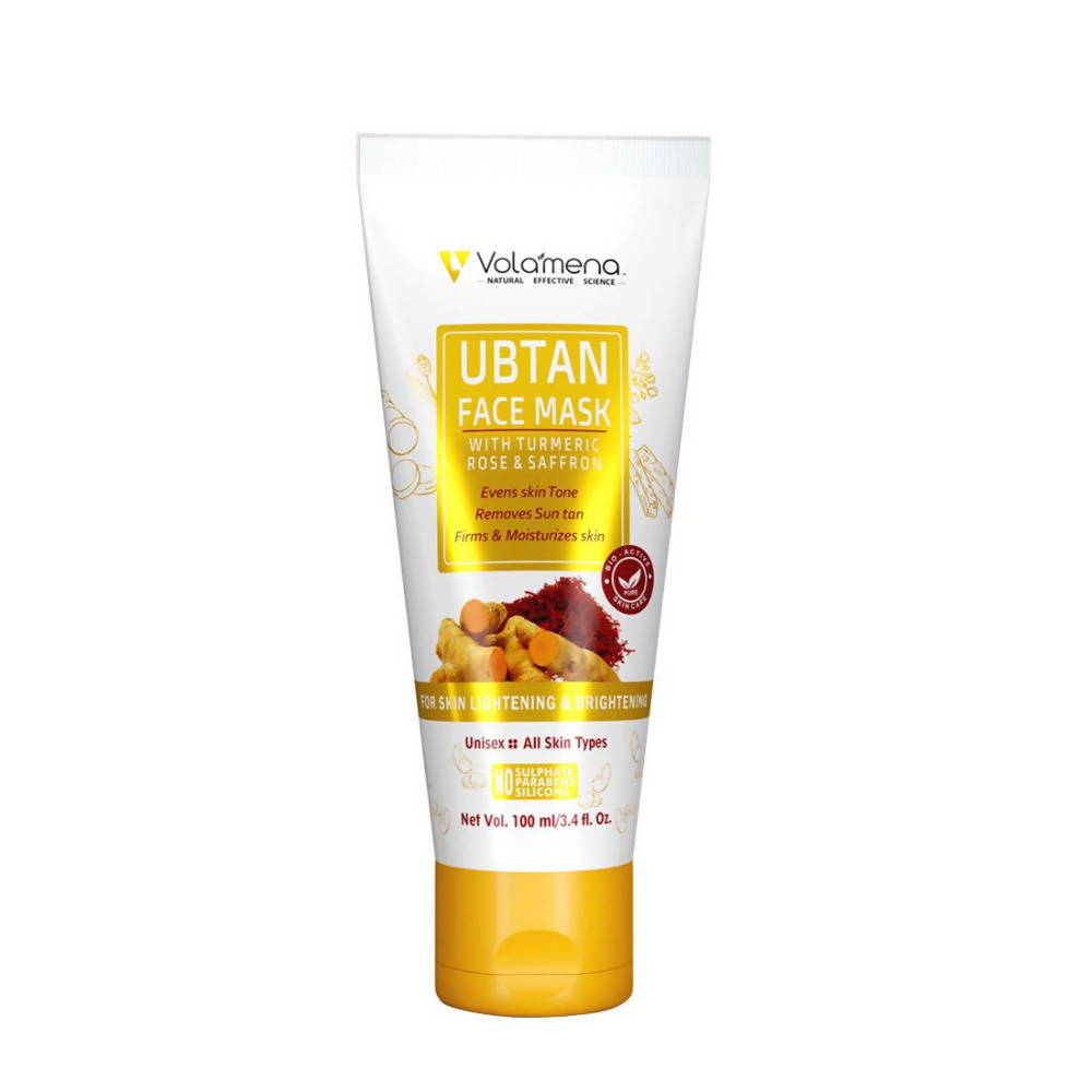 About the Product:- Volamena Ubtan Face Mask With Turmeric, Rose & Saffron is a traditional ubtan-inspired mask designed to illuminate dull skin, eliminate persistent blackheads, harmonize skin tone, and thoroughly cleanse impurities. Featuring pure turmeric essential oil, coffee extract, and shea butter, this mask helps your skin achieve a luminous glow. Enriched with anti-pollution ingredients like saffron, rose extract, and vitamin E, the formula combats aging signs caused by pollution and repairs damage while purifying and brightening the skin. Kaolin clay acts as an effective oil-absorbing agent, clearing and unclogging pores for a cleaner, healthier complexion. Suitable for all skin types including normal, lackluster, and dry skin.