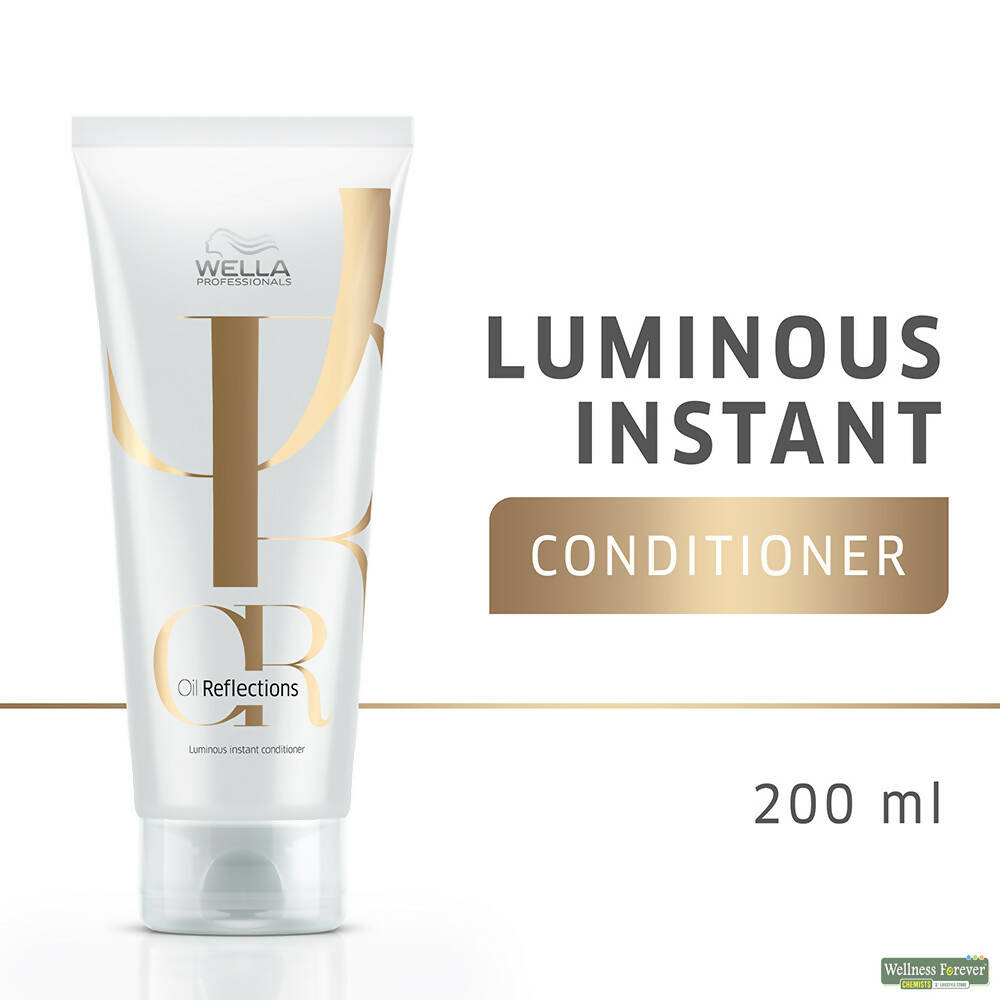 - Achieve sleek and radiant hair in just 30 seconds with Wella Professionals Oil Reflections Luminous Instant Conditioner. This expert conditioner seals moisture within the hair's structure, ensuring it remains nourished and radiant. Thanks to the infusion of camellia oil and white tea extract, this Wella conditioner imparts a luxurious smoothing effect.