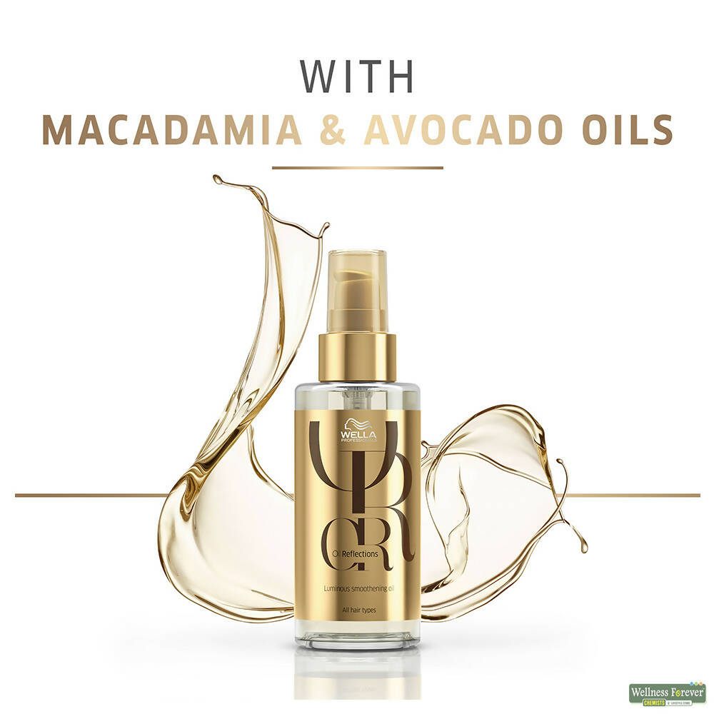 - Restore exceptional smoothness and radiant hair shine with Wella Professionals Oil Reflections Luminous Smoothing Hair Oil. This hair treatment oil, crafted with premium macadamia and avocado oils, imparts silkiness and a delicate sheen to hair. Thanks to its luxurious ingredients, hair becomes lustrous and soft to the touch.