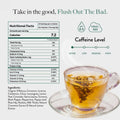 - Eliminate Toxins: Hibiscus elevates the production of drug-detoxifying enzymes for liver cleansing and fat reduction. Dandelion, Coriander, Lemongrass, and Fennel Seeds possess diuretic properties that boost urine volume and frequency, aiding in the expulsion of toxic waste and fostering overall purification. Licorice, Clove, Black Pepper, Rosehip, and Rooibos are potent antioxidants that neutralize free radicals, thereby supporting your immune system and enhancing overall wellness.