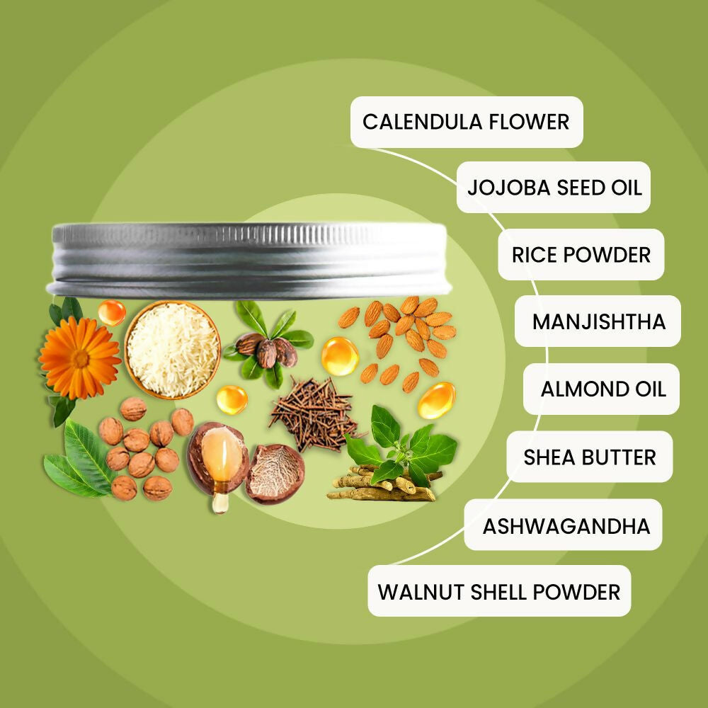 - 2. Walnut Shell Powder: Ground walnut shells provide effective yet mild exfoliation removing dead skin cells & smoother softer skin.