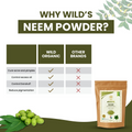 Wild Organic Neem Leaf Powder is an entirely organic neem formulation. This powder is meticulously processed through a triple-filtration technique to ensure exceptional fineness, providing an outstanding masking experience. It effectively manages acne, pimples, dark spots, and blemishes while tightening skin pores. Additionally, it removes blackheads and revitalizes dull facial skin.