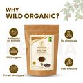 The Wild Organic Reetha Powder is entirely organic and does not contain any chemicals or preservatives. Crafted through the shade-drying of premium reetha nut shells, it is then finely ground under meticulous supervision. This Reetha powder serves as a natural hair cleanser that has been utilized for generations to purify hair naturally. It also functions as a scalp tonic. As a natural hair wash, it aids in controlling dandruff and minimizing hair fall when soaked or boiled in water. It produces a gentle lather that has been traditionally used in India for hair washing over centuries.