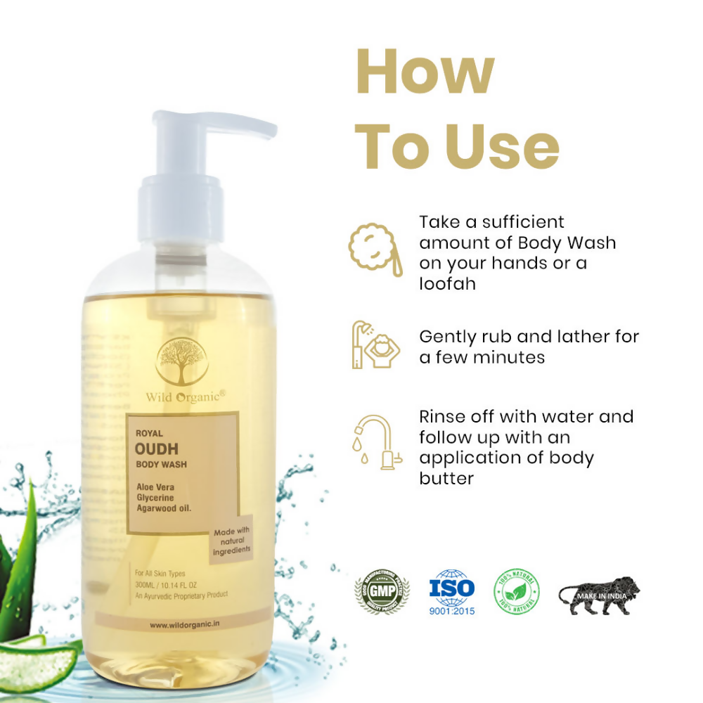 Wild Organic Royal Oudh Body Wash is an ayurvedic cleanser that leaves your skin feeling soft and supple, enriched with glycerine and a natural fragrance. It is gentle yet effective, helping to eliminate deeply embedded impurities from the skin. Your skin will feel soft and moisturized.