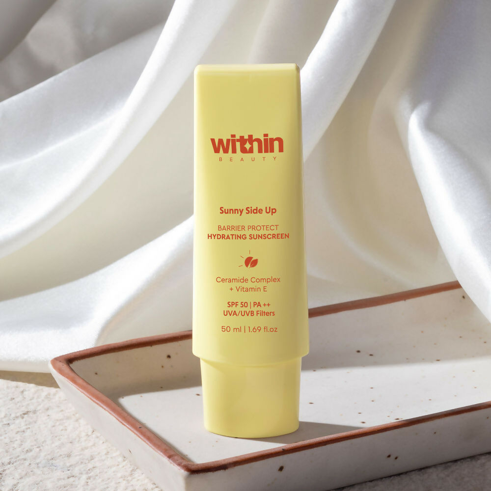 - Within Beauty Sunny Side Up Barrier Protect Hydrating Sunscreen is the exclusive ceramide-infused sunscreen that not only shields your skin from harmful UVA and UVB rays but also defends and rejuvenates your compromised skin barrier while offering SPF 50 PA+++ protection.