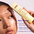 - Apply a generous amount (utilizing the 3-finger method is recommended) 15 minutes before sun exposure.