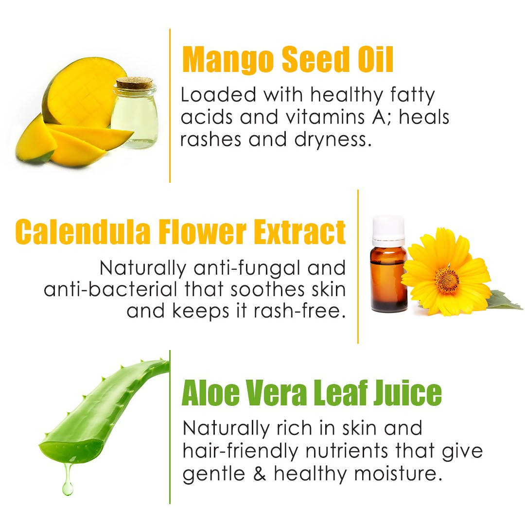 An all-purpose Shampoo, Conditioner & Body Wash designed for children aged 3 and up. This extraordinary product allows for triple usage. The delightful mango scent transforms bath time into a joyful experience for your little one. It leaves your child's skin exceptionally soft and their hair incredibly smooth. With its ultra-moisturizing, rich, and foamy lather, bathing becomes an enjoyable activity, and your child is left with a heavenly fragrance.How to use: