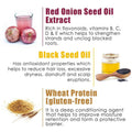 - Red onion extract and black seed oil contribute to enhancing hair vitality. Apply this conditioner after every wash to improve hair texture, increase volume, and impart a radiant shine.