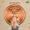 About the product:The Zandu Copper Bottle is designed to integrate copper intake into your daily habits. Copper is a crucial mineral that offers numerous health advantages. Direct consumption of copper isn't feasible, so Zandu has crafted this bottle for you to store water and enjoy its benefits. This is one of the simplest methods for self-care and enhancing well-being. When water is stored in the bottle for an extended period, copper infuses its ions into it. Therefore, it's advised to drink water from this bottle after it has been stored for 8 hours, ideally first thing in the morning on an empty stomach.