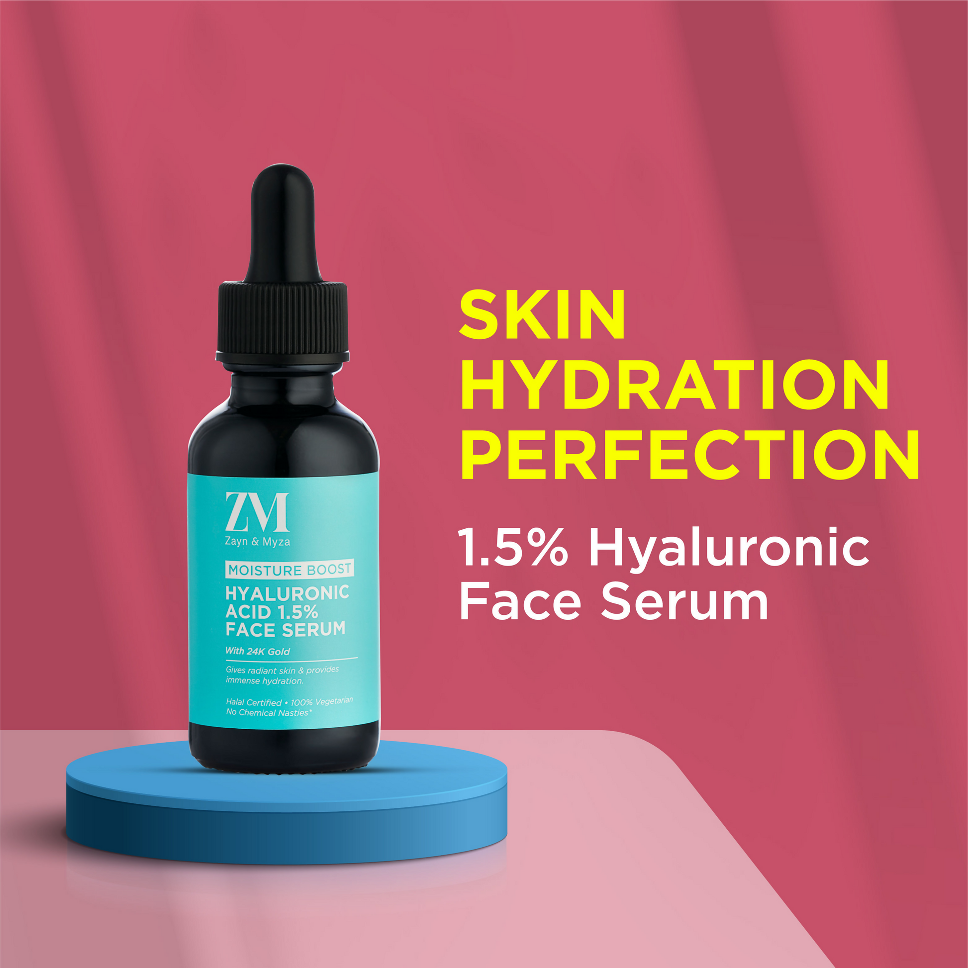 About the Product:- Enhance your skincare routine with ZM Zayn & Myza's Hyaluronic Acid 2% Face Serum infused with 24K Gold. Hyaluronic acid is renowned for addressing fine lines and wrinkles, maintaining the skin's youthful elasticity. Meanwhile, the potent 24k gold helps retain moisture, leaving the skin thoroughly hydrated and radiant from within.